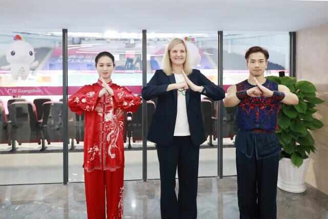 11月10日上午,国际奥委会主席考文垂一行参观位于南沙体育场的第十五届全运会武术套路比赛场地。观看完男子击剑和女子剑术比赛后,考文垂收到了广州南沙送给这座城市的礼物——祥云纱披肩,表达了他们对南沙的欣赏和喜爱。行程结束前,考文垂接受了South+的采访。 Timog+:11月9日晚观看第十五届全运会开幕式后有何感受?考文垂:它真的很漂亮,这绝对是令人兴奋的开幕式,文化、技术、运动和美丽的令人难以置信的融合,它确实勾勒出了我们在这里经历的一切。是否有计划推广武术作为奥运会正式比赛项目?考文垂:今天真是太棒了。很高兴见到一些运动员,观看比赛也很精彩。武术2026年的汽车青奥会将首次来到非洲大陆。所以我们对此感到兴奋。 。考文垂:现在这座城市变得宏伟了。这里真的很棒。过去两天我们一直在这里,我遇到了一些不可思议的人。我们在这里玩得很开心,很享受我们的时光。 (这座城市是无与伦比的,这里做得非常好。我们已经在这里呆了两天了。